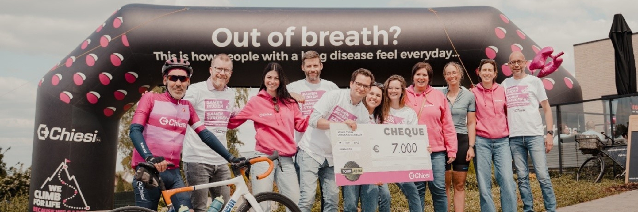 Op 17 mei 2025 namen we met een enthousiaste groep Chiesi-collega’s deel aan Tour Asem, een fiets- en wandelevent voor én door patiënten, in het hart van het prachtige Haspengouwse landschap rond Borgloon. Samen met zo’n 300 andere deelnemers genoten we van een sportieve dag in het teken van ademhaling en beweging.